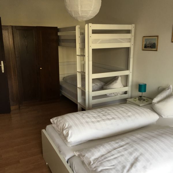 The 3-room apartment is situated on the ground floor with direct access to the terrace and garden. It includes a large living/dining room with a double bed sofa, cable-TV, a double bedroom and another bedroom with two beds and a bunk bed. The new separate kitchen has a ceramic glas cooktop, oven, dishwasher and microwave. Bathroom with tub/shower and WC. Facilities: Free W-LAN and cot.