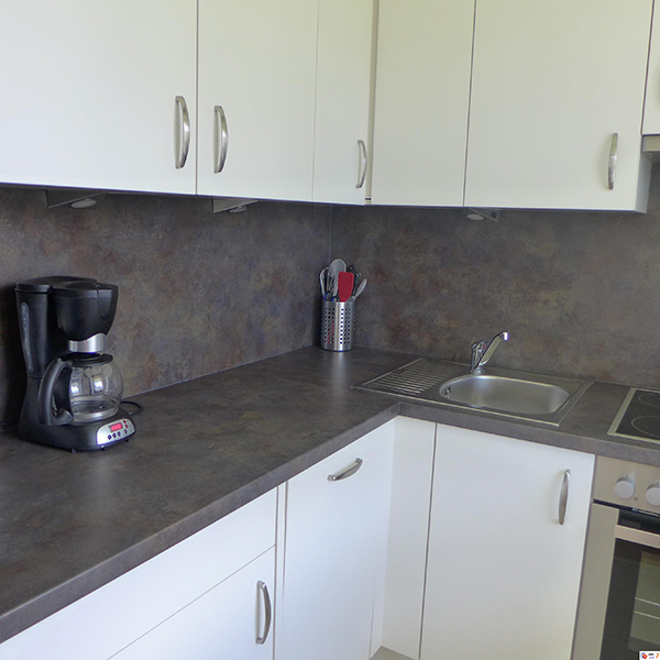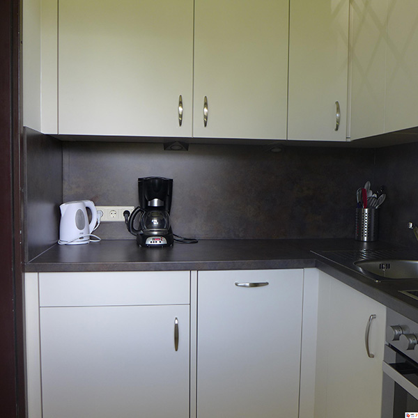 The 1-room apartment is situated on the first floor with direct access to a large balcony. It includes a bed room with a double bed, small sofa, table and cable-TV. The new separate kitschen provides a ceramic glas cooktop, oven, dishwasher and microwave. New bathroom with shower and WC. Facilities: Free W-LAN.