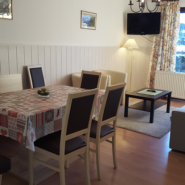 The small house with only 4 apartments is located only 300 m from the centre in a quiet, sunny position, surrounded by a garden. You will find in the house a sauna and a ski storage. Parking is in front of the house. Whether you are travelling on your own, with friends or with your family - we have the right apartment to suit your needs. Our spacious apartments sleep 2-8 people and all have kitchens, living rooms, 1-2 bedrooms, balconies or terraces with access to the garden, bath/WC, cable TV's and WIFI. During the winter you can relax in our sauna after an active day on the slopes.