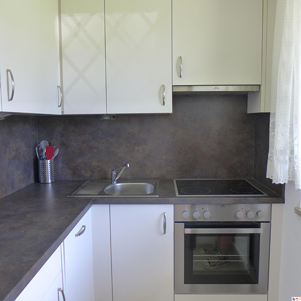 Das Apartment mit 24m² Wohnfläche liegt im 1. Stock und hat einen herrlichen Ausblick auf die umliegenden Berge. Es besteht aus einem Eingangsbereich, einem Wohn-Schlafzimmer mit einem Doppelbett, Esstisch, Kabelfernseher und W-LAN. Die neue separate Küche ist mit Elektroherd mit Backofen und Kühlschrank mit Gefrierfach ausgestattet. Das neue Badezimmer verfügt über eine Dusche. Durch die Glastür gelangen Sie direkt auf den Balkon.